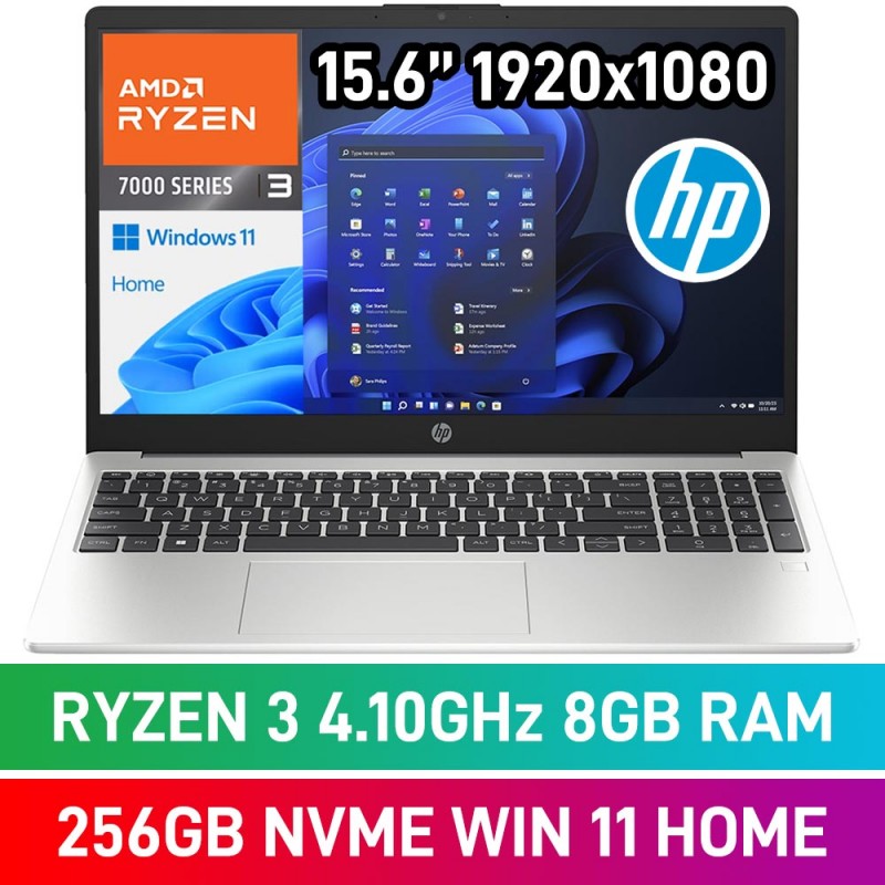HP 255 G10 AD0V3ET Laptop — Ryzen 3 7320U / 15.6" FHD / 8GB DDR4 / 512GB Gen4 NVMe SSD / Windows 11 Home / Turbo Silver