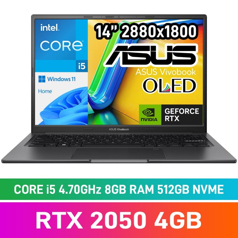 ASUS VivoBook 14X OLED K3405VF-OI58512B0W Laptop — Intel Core i5-13500H / 14" WQXGA+ 90Hz OLED HDR / 8GB DDR4 RAM / GeForce RTX 2050 4GB / 512GB NVMe SSD / Windows 11 Home / Indie Black