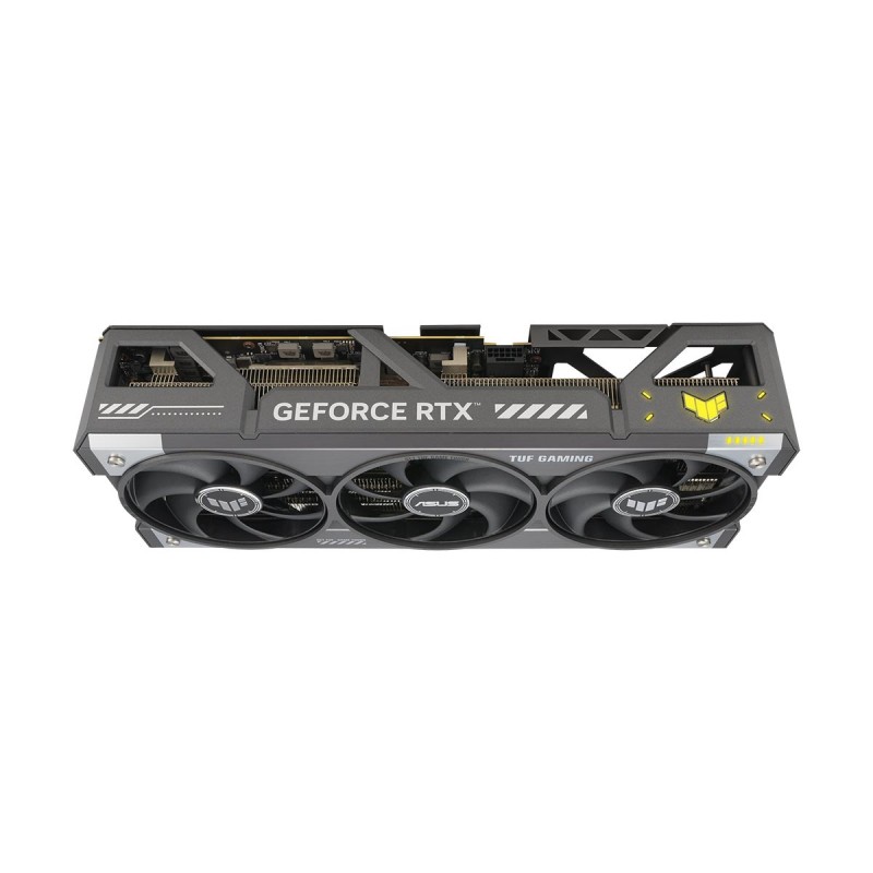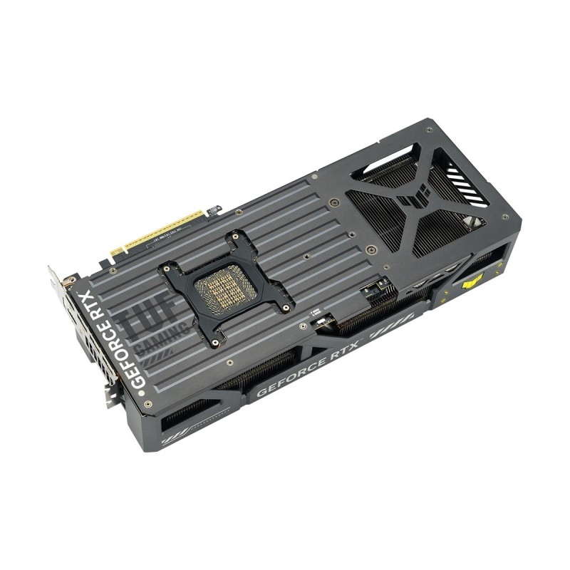 NVIDIA Blackwell architecture is elevated by enhanced cooling and power delivery, fortified with rugged reinforcements for exceptional durability. Lock, load, and dominate with the TUF Gaming GeForce RTX 5090, designed to withstand the harshest conditions and deliver unparalleled performance. By melting to effectively fill the gaps between the GPU and the thermal module, a premium phase-change GPU thermal pad provides superior thermal conductivity and enhanced heat dissipation, ensuring optimal performance and longevity for graphics cards under heavy loads. A high-quality diecast shroud and aluminum backplate help prevent PCB flex and feature large vents to further increase heat dissipation. ASUS GPU Guard applies adhesive to secure all four corners to reduce the risk of cracks, while a GPU bracket helps ensure uniform mounting pressure and extra stability.