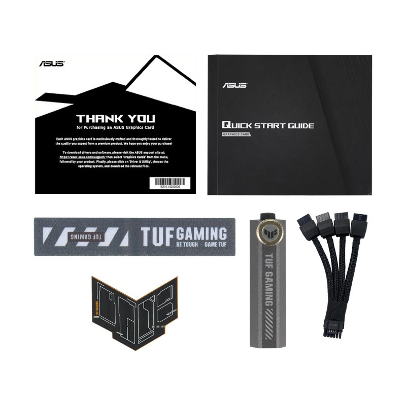 Accessories | Speedsetup Manual TUF Graphics Card Holder TUF Velcro Hook & Loop TUF Magnet TUF Gaming Certificate Thank You Card Adapter Cable (1 to 4) |