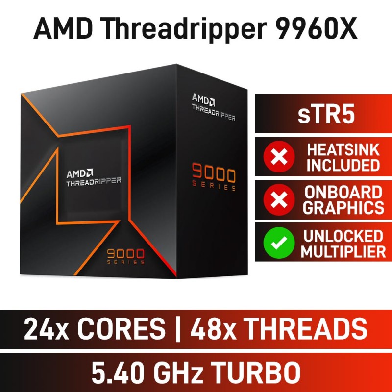 AMD Ryzen Threadripper 9960X 24-Core CPU, Socket sTR5, 4.2GHz (5.4GHz Boost)