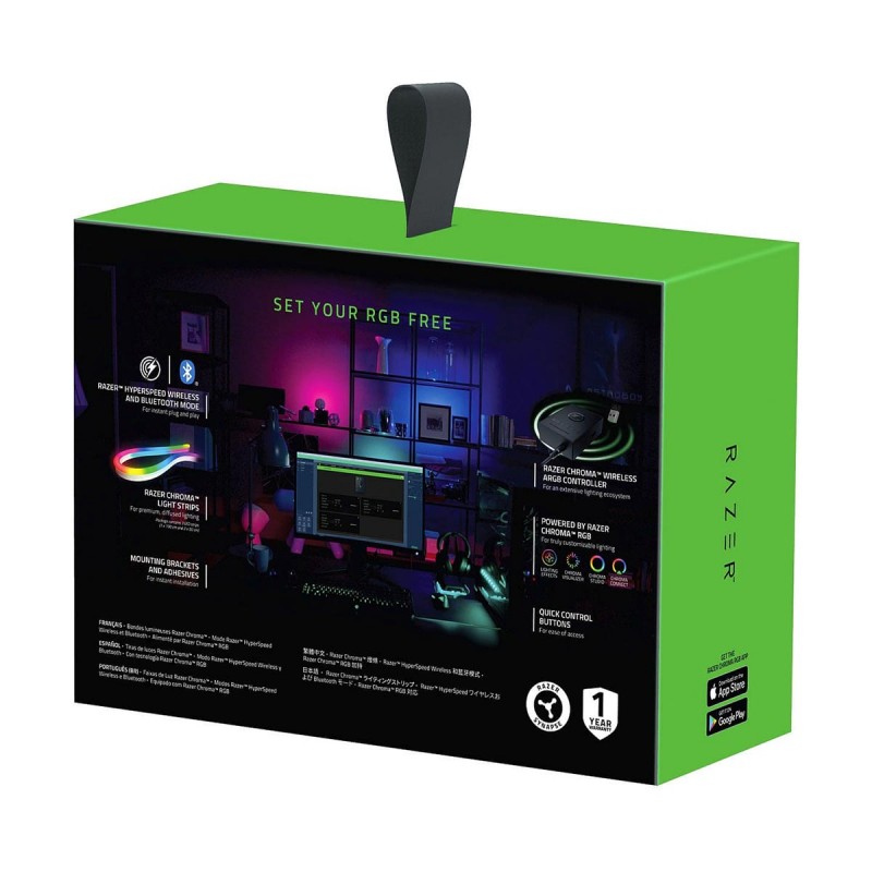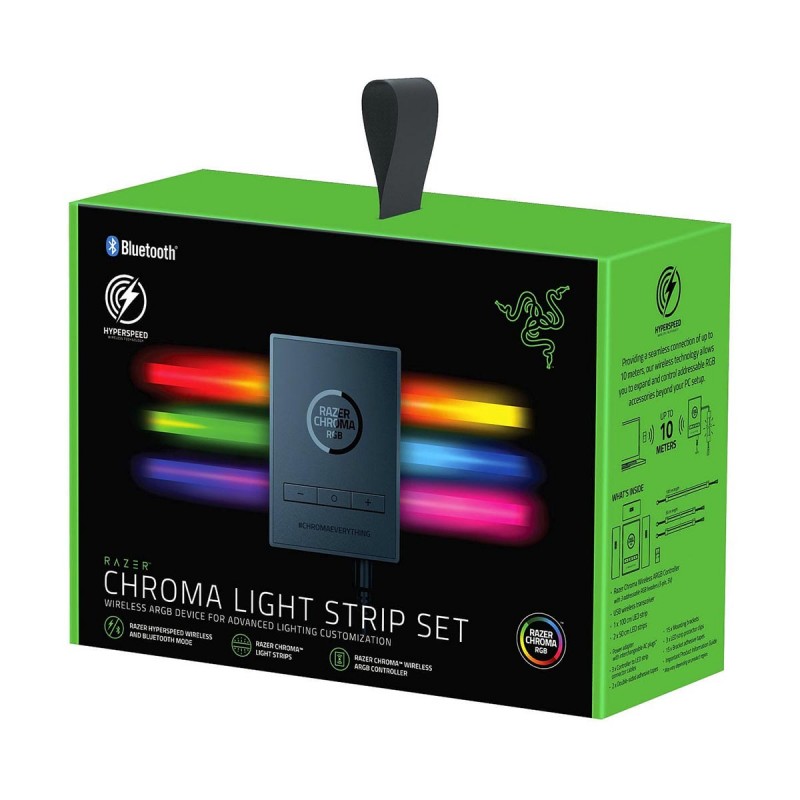 Immerse yourself in the full Razer Chroma™ RGB experience anywhere with the Razer Chroma Light Strip Set. With the help of its wireless controller, sync your setup instantly as you enjoy gaming in a whole new light. The set contains a total of 120 individually addressable LEDs (1x100cm, 2x50cm)—all housed in premium light diffusing cases for a vibrant and gradient glow. The set includes the tools required to instantly and easily set up your lighting ambience, giving you absolute freedom to expand your RGB domain. Toggle through 84 lighting effects using the dedicated buttons on the controller. Tweak and customize the light strips wirelessly by connecting to the Chroma RGB app via Bluetooth. Customize and create your own lighting effects via Razer Synapse 3 by plugging in the wireless USB dongle to your PC or connecting via Bluetooth. With 16.8 million colors and a suite of unique lighting effects, our iconic RGB lighting system has made its way onto the homes of gamers worldwide. Whether it’s enhancing your immersion through Chroma-integrated games, or designing your dream gaming room setup, we offer a level of RGB lighting customization that can’t be found anywhere else.