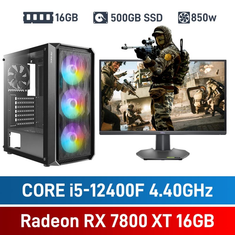 Intel Core i5-12400F / Radeon RX 7800 XT / 16GB RGB DDR4-3600 / 500GB NVMe SSD Budget Gaming PC