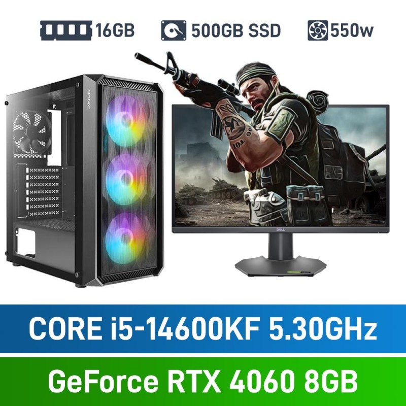 • Intel Core i5-14600KF / GeForce RTX 4060 / 16GB RGB DDR4-3600 / 500GB NVMe SSD Budget Gaming PC