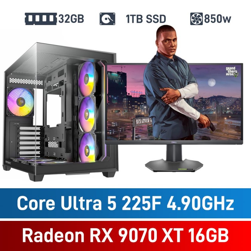 • Intel Core Ultra 5 225F / Radeon RX 9070 XT / 32GB RGB DDR5-6000 / 1TB NVMe SSD PHAT Gaming PC