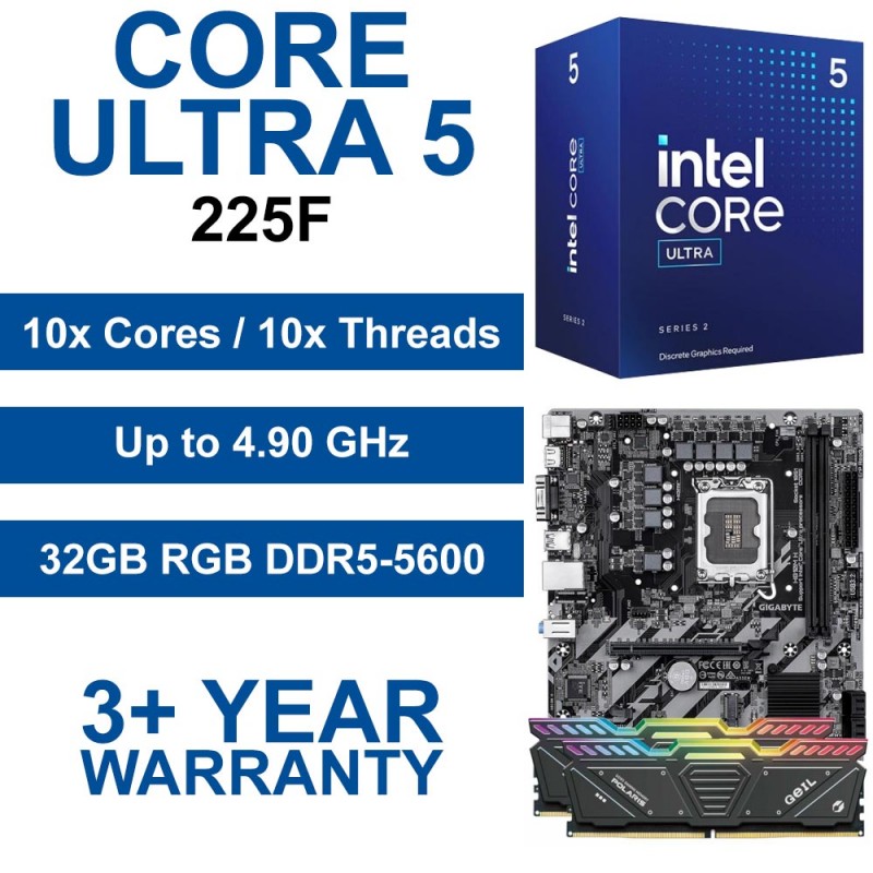 Intel Core Ultra 5 225F / H810M Motherboard / 32GB RGB DDR5-5600 Upgrade Kit