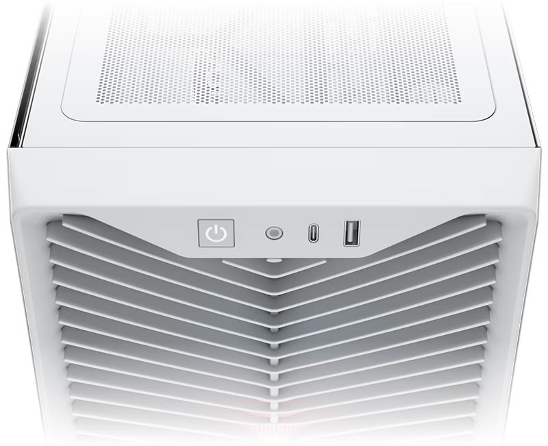 The top-mounted I/O ports grant easy access to a USB 3.2 Gen 2x2 Type-C 20Gb/s port for lightning-fast data transfers, a USB 2.0 Type-A, a combo audio/microphone jack, and a power button.