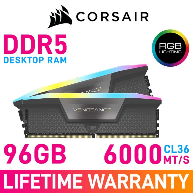 Corsair VENGEANCE RGB DDR5 AMD EXPO 96GB (2 x 48GB) DDR5 DRAM 6000MHz CL36 1.40V CMH96GX5M2E6000Z36 Memory Kit — Cool Grey