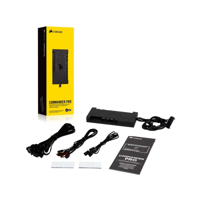 | Contents | 1 x Commander PRO Controller 2 x RGB LED hub cables 4 x Thermal sensors 4 x Fan extension cables 2 x Mounting tape 1 x Installation guide |