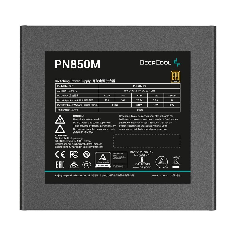 DEEPCOOL PN850M 80 PLUS Gold Fully Modular PCIe 5.1 12VHPWR 12V-2x6 ATX 3.1 PSU, 850w