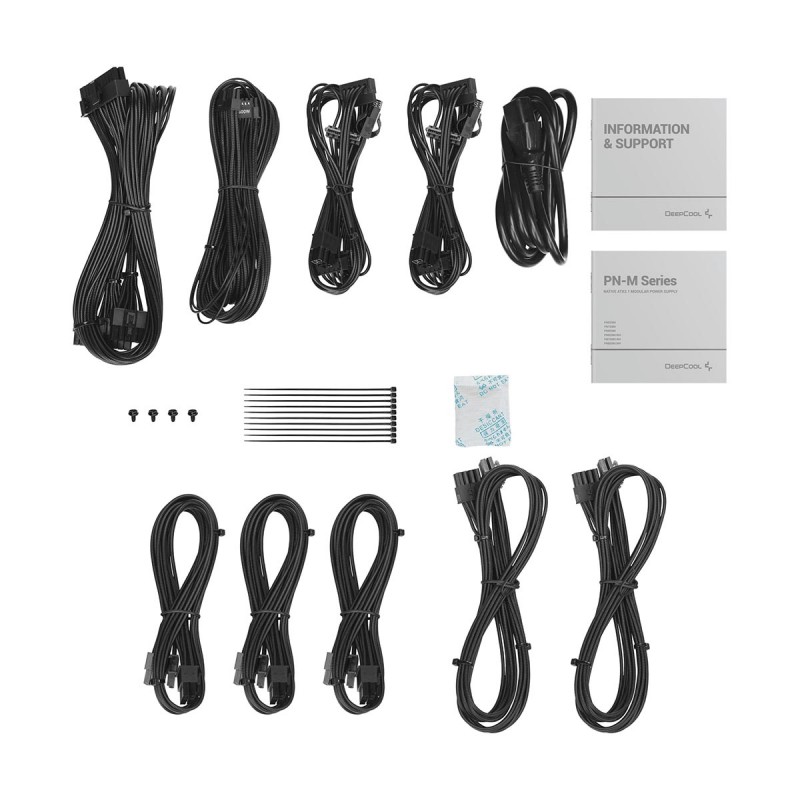 The DeepCool PN850M is a new power supply that meets the latest Intel ATX 3.1 and PCIe 5.1 standard. With a dedicated 12V-2x6, 5 EPS/PCIe ports, the PN850M provides stable power for a wide range of modern high-power components. With the ability to provide twice the total system power for 0.1 ms, random power spikes will never be an issue. The PN850M will provide stable and consistent power for legacy and next-generation PCs for the foreseeable future. 80 Plus Gold certified to meet a high level of power efficiency under 90% of typical loads. Each unit is also rated Gold by Cybenetics. Through the use of a main Japanese electrolytic capacitor, active PFC, full-bridge SRC LLC, and a DC-to-DC topology, the PN850M can keep the hold-up time to ≥ 16 ms under a high load of 80%. Equipped with a high-grade 105C-resistant 16AWG copper-core embossed 12V-2x6 cable, the PN850M provides up to 600W for modern GPUs. The PN850M has been outfitted with sleeved cables right out of the box! A welcomed upgrade to add to the premium asesthic and feel of the PSU. The PN850M comes equipped with a dynamic 120mm FDB fan that will adjust its speed based on the cooling needs of the PSU. The PN850M comes standard with a slew of well-rounded safeguards, including OPP, OVP, SCP, OTP, OCP, UVP, NLO, and SIP.