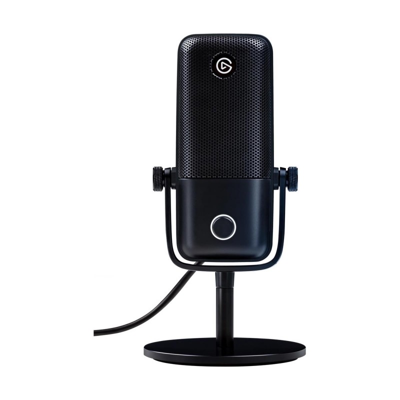 The Elgato Wave:1 is a versatile USB electret-condenser microphone designed for a wide variety of podcasting, streaming, gaming, and recording applications. The mic connects to your computer via a USB Type-C connector for recording at resolutions up to 24-bit / 48 kHz. The USB port also supplies a computer return to the microphone, which you can monitor along with your voice through the 3.5mm headphone jack. Headphone volume is controlled by an easy-to-access knob, which functions as a mute when pushed. Elgato's Wave Link app gives podcasters and streamers control over 9 independent input channels in their Mac or PC, allowing for game audio, voice chat, music, alerts, samples, and more to be blended together in the mix. The included desktop stand features an adjustable U-mount for precise positioning and a padded base to reduce vibration noise. Detach the stand and use the included adapter to attach the Wave:1 to boom stands and suspension arms. A steel grille protects the electret-condenser mic capsule while reducing breath and plosive noise for clearer, more intelligible speech.