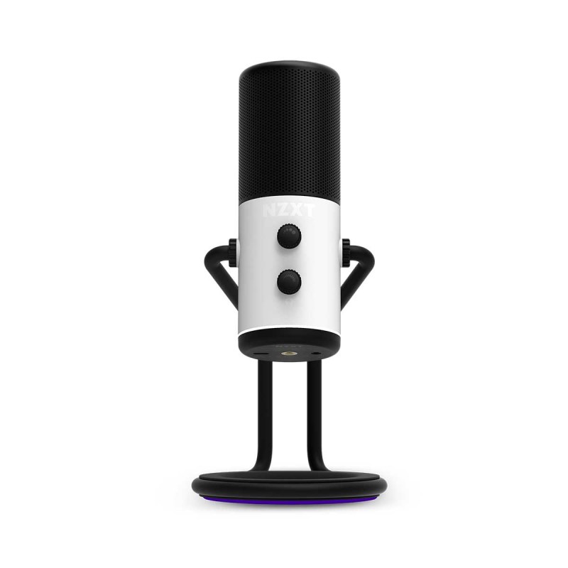 NZXT Capsule Cardioid USB Microphone with Built-In Headphone Amp and Desktop Stand — White