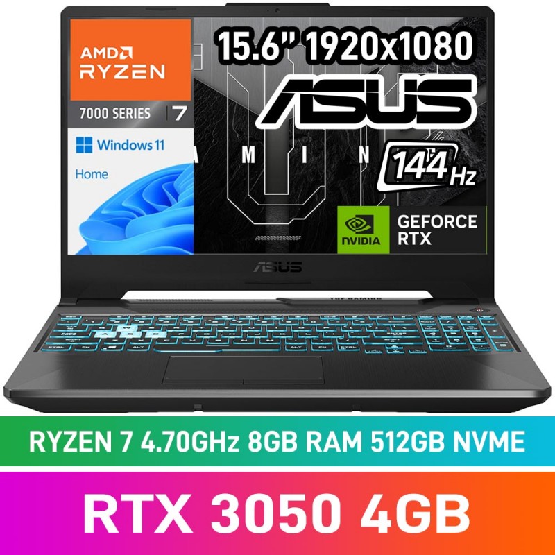 ASUS TUF GAMING A15 FA506NCG-78512B0W Laptop — AMD Ryzen 7 7445HS / 15.6" FHD 144Hz / 8GB DDR5 RAM / GeForce RTX 3050 4GB / 512GB Gen4 NVMe / Windows 11 Home / Graphite Black