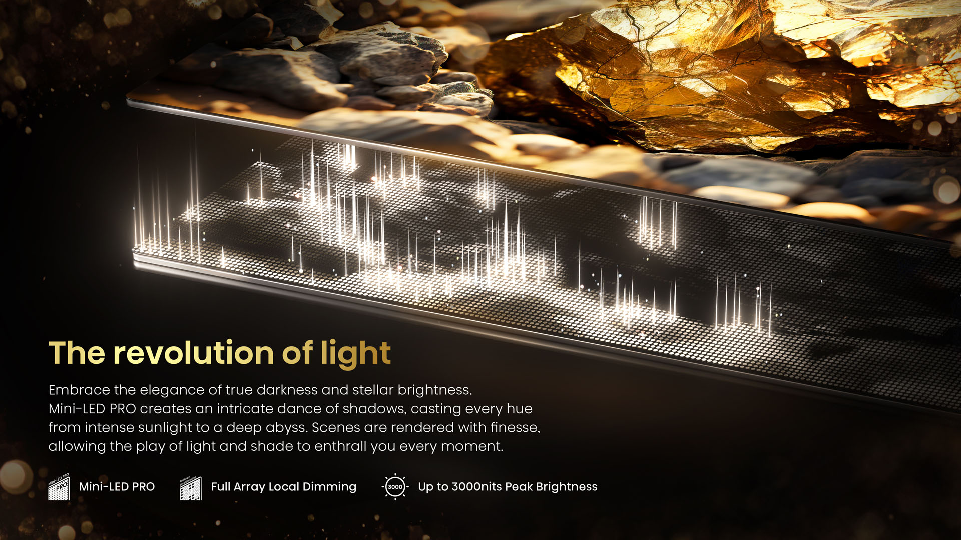 Mini-LED Pro technology features smaller, more densely packed LEDs that offer precise control over backlighting. This results in deeper blacks, brighter highlights, and more detailed contrast, delivering a superior picture quality that’s perfect for HDR content.