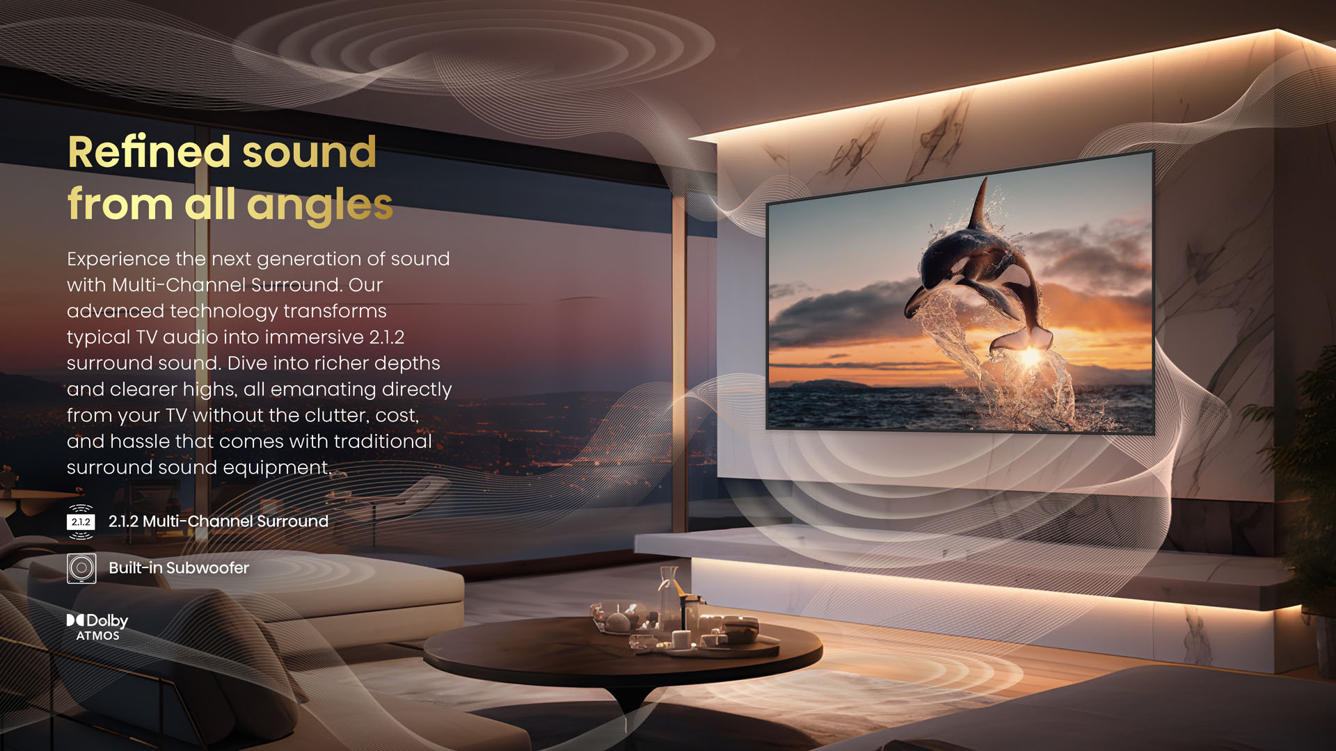 Quantum Dot Colour technology enhances color accuracy and brightness, bringing a wider spectrum of colors to your screen. This technology allows for more vibrant, lifelike colors, making every scene more immersive and realistic.