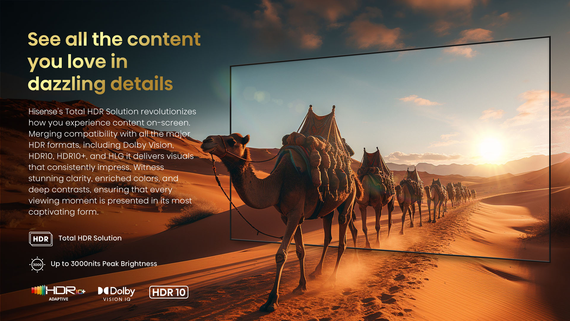 Hisense’s Smooth Motion technology ensures that fast-moving action is fluid and crisp, without the blur. Perfect for sports, action movies, and gaming, this feature keeps up with every beat, delivering a seamless viewing experience.