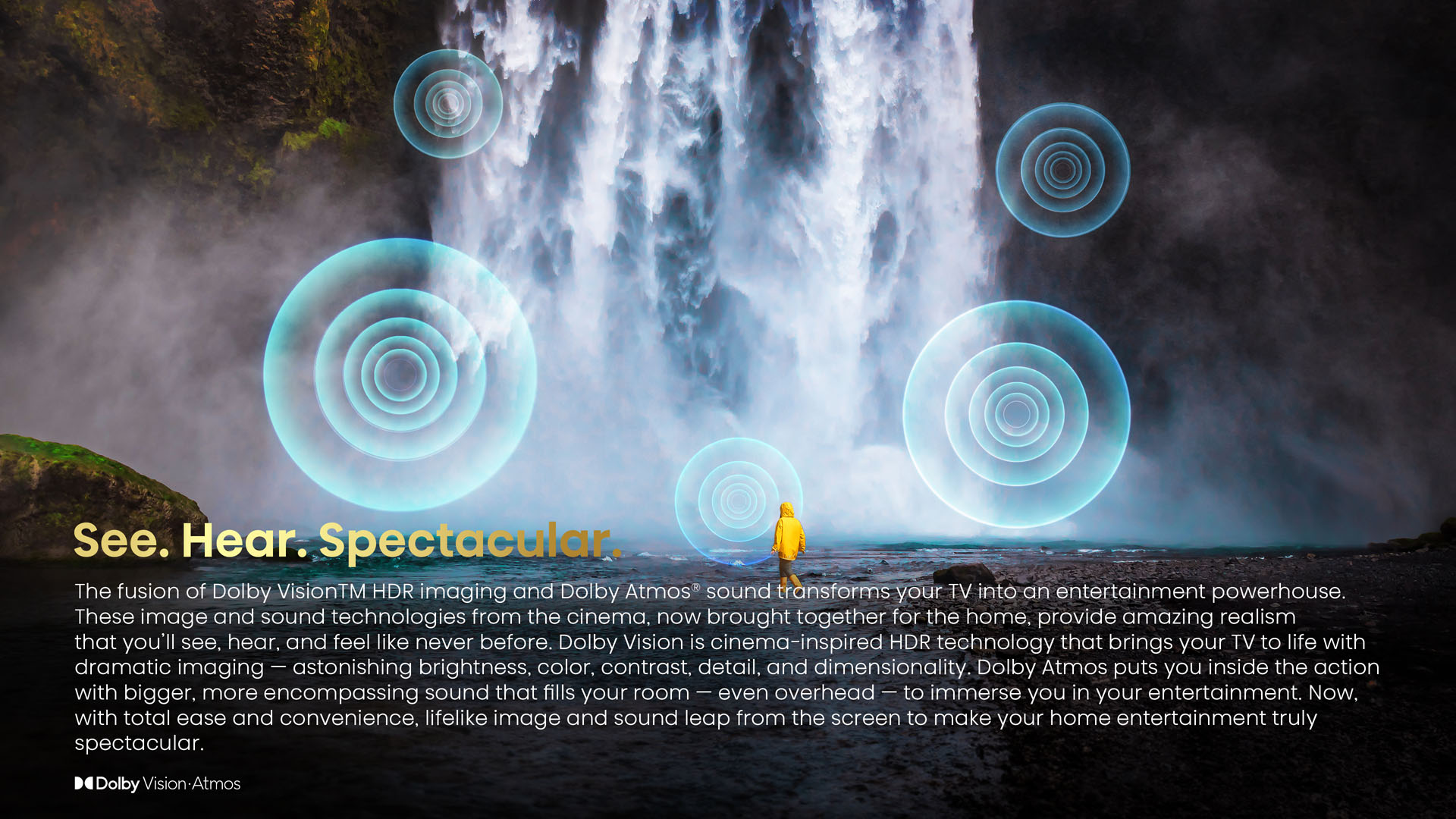 Dolby Vision takes your viewing experience to a new level with superior brightness, contrast, and color. It's the same technology used by filmmakers, bringing a stunning, dynamic picture that’s closer to the director’s original vision.