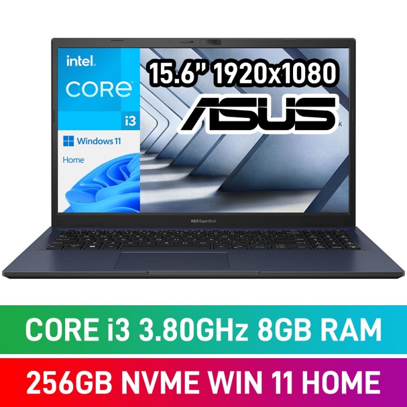 ASUS ExpertBook B1 B1502CGA-I382B5W Laptop — Core i3-N305 / 15.6" FHD / 8GB DDR4 RAM / 256GB NVMe SSD / Windows 11 Home / Star Black + Wireless Mouse + Backpack