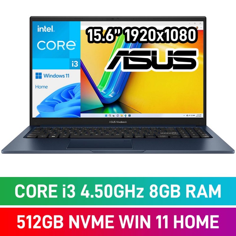 ASUS VivoBook 15 X1504 X1504VA-I38512BL0W Laptop — Intel Core i3-1315U / 15.6" FHD / 8GB DDR4 RAM / 512GB NVMe SSD / Windows 11 Home / Quiet Blue