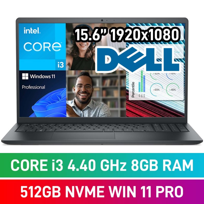 Dell Vostro 15 3520 N3001PVNB3520EMEA01 Laptop — Core i3-1215U / 15.6" FHD / 8GB DDR4 RAM / 512GB NVMe SSD / Windows 11 Pro / Carbon Black