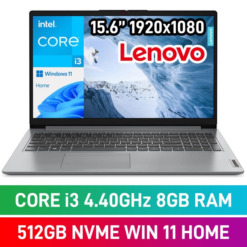 Lenovo IdeaPad 3 15IAU7 82QD00G7FU Laptop — Core i3-1215U / 15.6" FHD / 8GB DDR4 / 512GB Gen4 NVMe SSD / Windows 11 Home / Cloud Grey
