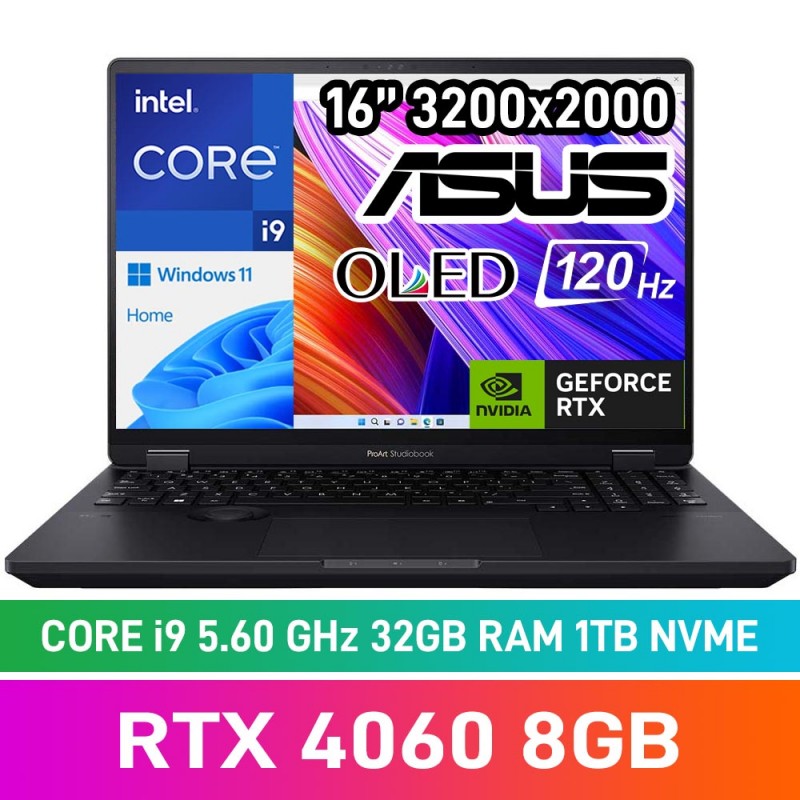 ASUS ProArt Studiobook 16 OLED H7604JV-OI93210B0W Laptop — Core i9-13980HX / 16" 3.2K 120Hz Touch OLED HDR / 32GB DDR5 RAM / GeForce RTX 4060 8GB / 1TB Gen4 NVMe / Windows 11 Home / Mineral Black