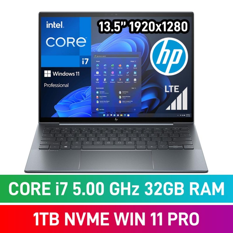 HP Dragonfly G4 8A3H3EA Laptop — Core i7-1355U / 13.5" WUXGA+ IPS Touchscreen / 32GB DDR5 / 1TB Gen4 NVMe SSD / LTE / Windows 11 Pro / Slate Blue