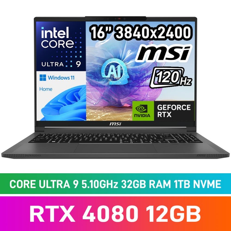MSI CREATOR 16 AI STUDIO A1VGG-082ZA Laptop — Core Ultra 9 185H / 16" 4K+ 120Hz MiniLED / 32GB DDR5 RAM / GeForce RTX 4080 12GB / 1TB Gen4 NVMe SSD / Windows 11 Home / Lunar Grey