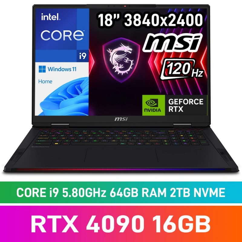 MSI RAIDER 18 HX A14VIG-469ZA Laptop — Core i9-14900HX / 18" UHD+ 120Hz / 64GB DDR5 RAM / GeForce RTX 4090 16GB / 2TB Gen4 NVMe SSD / Windows 11 Home / Core Black