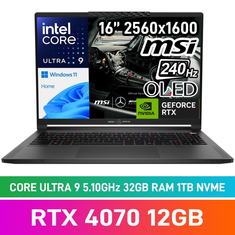 MSI STEALTH 16 Mercedes-AMG Motorsport A1VGG-408ZA Laptop — Core Ultra 9 185H / 16" WQXGA 240Hz OLED / 32GB DDR5 RAM / GeForce RTX 4070 8GB / 1TB Gen4 NVMe SSD / Windows 11 Home / Selenite Grey