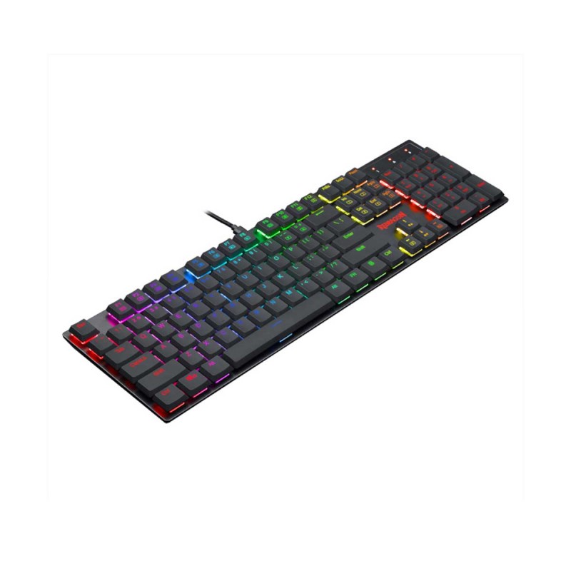 The Redragon K535 Apas Slimline 104 Key RGB Mechanical Gaming Keyboard has everything you need to get an edge in gaming. Its slim design with 104 detachable low-profile switches makes it not only compact and comfortable to use but also more versatile in terms of customization. This full-sized keyboard is also very easy to connect to your PC thanks to the ultra-fast Type-C to USB cable that is detachable. To express yourself it features RGB LED-backlit keys that can add some flair to your setup, while its double-shot injection keycaps ensure the light passes easily enough for you to see yet durable enough to last a long time during use. For additional safety, it also features a spill-proof design.