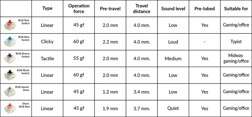 | Switch Type | Cherry MX2A Speed Silver (RGB Compatible) |