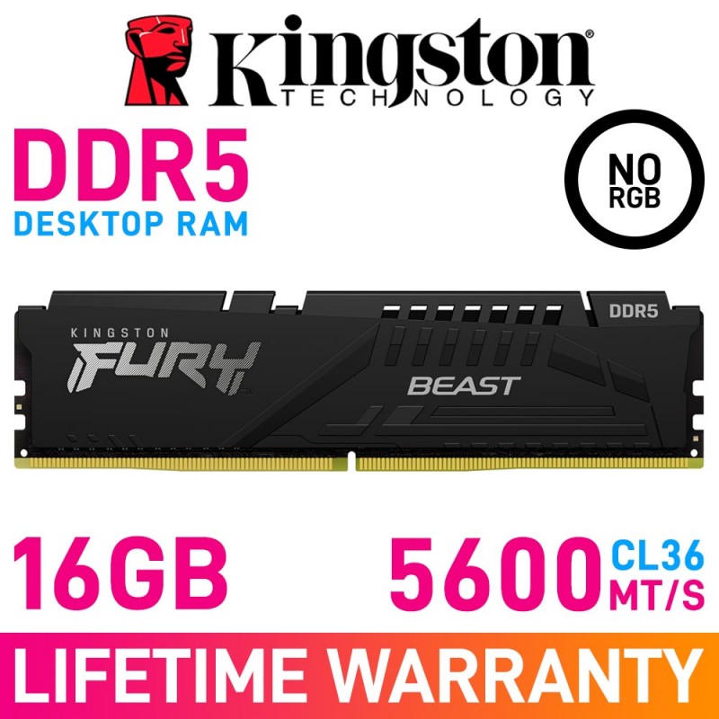 Kingston FURY BEAST DDR5 16GB (1 x 16GB) DDR5 DRAM 5600MHz CL36 1.25V KF556C36BBE-16 Memory Module — Black