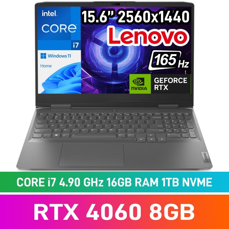 Lenovo LOQ 15IRH8 82XV00MESA Laptop — Core i7-13620H / 15.6" WQHD 165Hz G-SYNC IPS / 16GB DDR5 / GeForce RTX 4060 8GB / 1TB Gen4 NVMe SSD / Windows 11 Home / Storm Grey