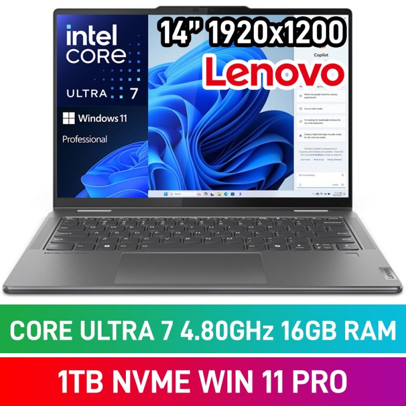 Lenovo Yoga 7i 2-in-1 14IML9 83DJ0077SA Laptop — Core Ultra 7 155U / 14" WUXGA Touchscreen / 16GB DDR5 / 1TB Gen4 NVMe SSD / Windows 11 Pro / Storm Grey