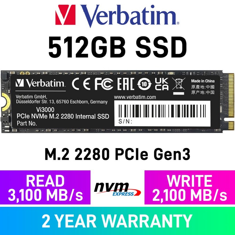Verbatim Vi3000 Gen3x4 M.2 2280 NVMe SSD — 512GB