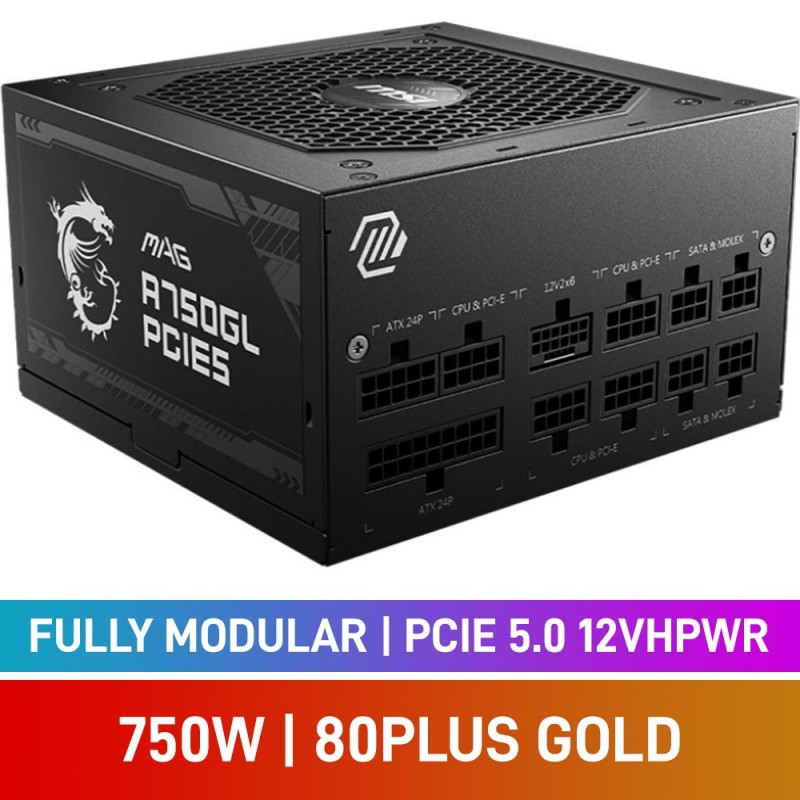 MSI MAG A750GL PCIE5 80 PLUS Gold Fully Modular PCIe 5.0 12VHPWR ATX 3.0 PSU, 750w