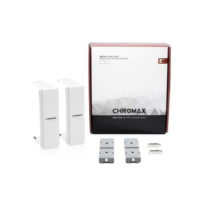 The NA-HC4 chromax.white heatsink covers are an add-on accessory for Noctua’s award-winning NH-D15, NH-D15S and NH-D15 SE-AM4 CPU coolers. Made from high-quality aluminium with white powder-coating finish, they allow users to give the cooler a sleek snow-white look that is right at home in all-white or black and white builds. Thanks to the easy, straightforward installation, changing the looks of your NH-D15(S) cooler only takes a few minutes and doesn’t even require taking it off the CPU. Combined with chromax.black.swap edition NF-A15, fans and their white anti-vibration pads, the NA-HC4 chromax.white covers give you the option to turn your NH-D15(S) into a black and white powerhouse that looks just as great as it cools.