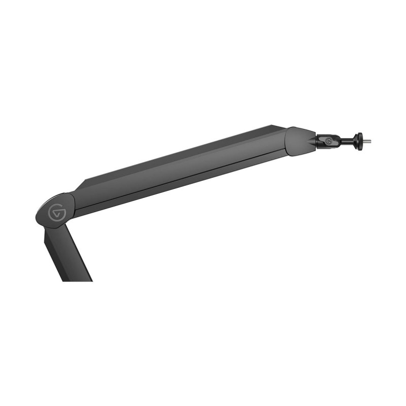 The Elgato Wave Mic Arm is a two-section suspension boom arm designed for flexible desktop microphone positioning for broadcasting, podcasting, gaming, and voiceover recording applications. The arm attaches to your desk via a padded clamp that expands up to 2.4". The arm rotates 360 degrees and features a maximum reach of 30.7" (78cm) horizontally and 29.5" (75cm) vertically. A riser extension is also included that adds another 5.9" (15cm) in height when employed. The Wave Mic Arm will accommodate mics weighing from 0.55 to 1.65 lb (250 to 748g), and a counterweight is included for use with lighter microphone models. A ball head provides precise positioning for your mic while the arm's cable channel makes it easy to conceal your XLR cable for a neat and professional appearance.