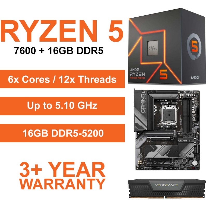 AMD Ryzen 5 7600 / Gigabyte B650 Gaming X Wi-Fi Motherboard / 16GB DDR5-5200 Upgrade Kit