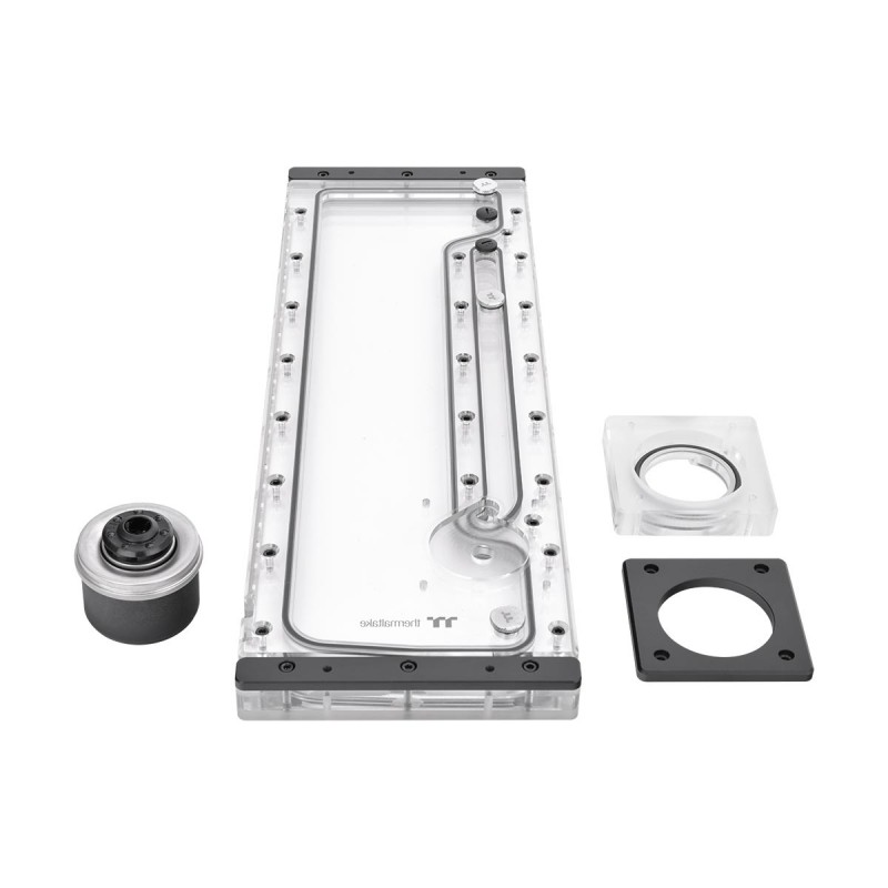 Pacific Core P8 DP-D5 Plus is specifically designed for the Core P8 Chassis, and it is a Modder level reservoir integrated with a high-performance D5 pump. It’s a distribution plate with a pre-installed D5 pump, the Thermaltake Core P8 DP-D5 can release the limit for Core P8 Chassis. It can perfectly integrate and upgrade your build. For those who are into RGB, it can be synced with Thermaltake RGB PLUS ecosystem and fulfil your request. Controlled by the patented TT RGB PLUS 2.0 Software and the app, P8 DP-D5 Plus’s 24 LEDs light up the distro plate with stunning customizable RGB lighting. It features 24 addressable LEDs with 16.8 million RGB colors. The lighting is compatible with TT RGB PLUS 2.0 and ASUS, GIGABYTE, MSI, and ASROCK RGB software. Core P8 DP-D5 Plus simplifies the tube structure of liquid cooling and delivers exceptional space savings for the Core P8 chassis. It not only has excellent pressure resistance to sustain the output up to 50 PSI (pounds per square inch) from the pump, but can also guarantee the overall product durability. High performance pump achieving 1135 L/hr and having a lifecycle of 50,000 hours MTBF.