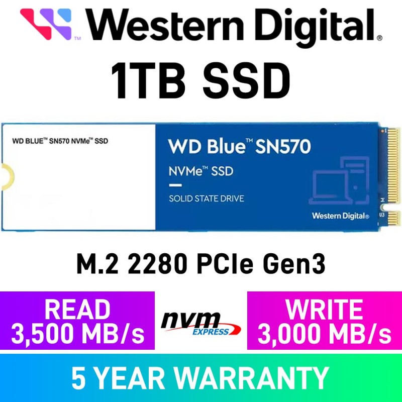 Western Digital WD Blue SN570 PCIe Gen3x4 M.2 2280 NVMe SSD — 1TB